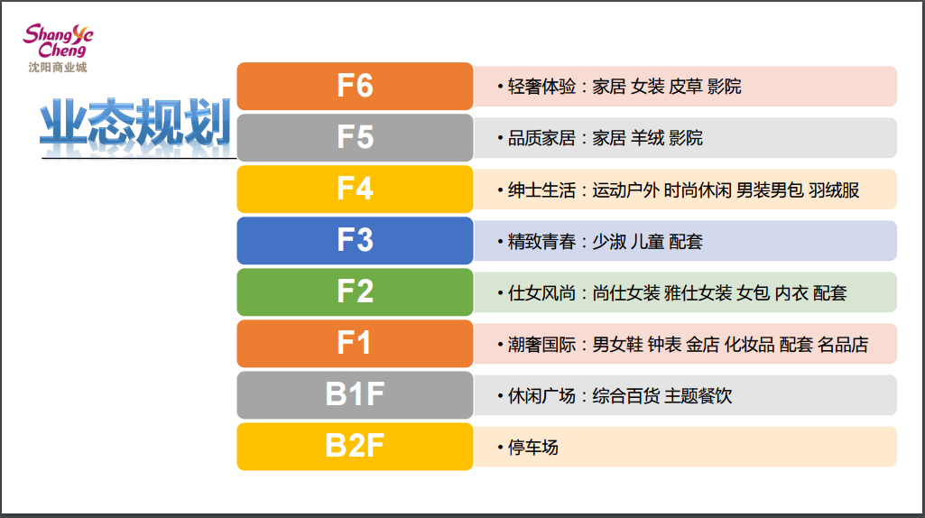 發(fā)布會現(xiàn)場,鐘總以“三個堅持”和“三個改變”明確了沈陽商業(yè)城的規(guī)劃定位調整。她表示:“我們將一如既往堅持英倫風格的建筑定位,堅持中高端的檔次定位,堅持以販物、餐飲、體驗、休閑娛樂為主的功能定位。同時,將主題定位向突顯風尚、文化、體驗、有特色的城市型時尚百貨轉型;調整業(yè)態(tài)業(yè)種配比定位,增加餐飲、娛樂休閑、兒童業(yè)態(tài);調整功能分區(qū)定位,使主體功能更利于消費者聚焦定向”。